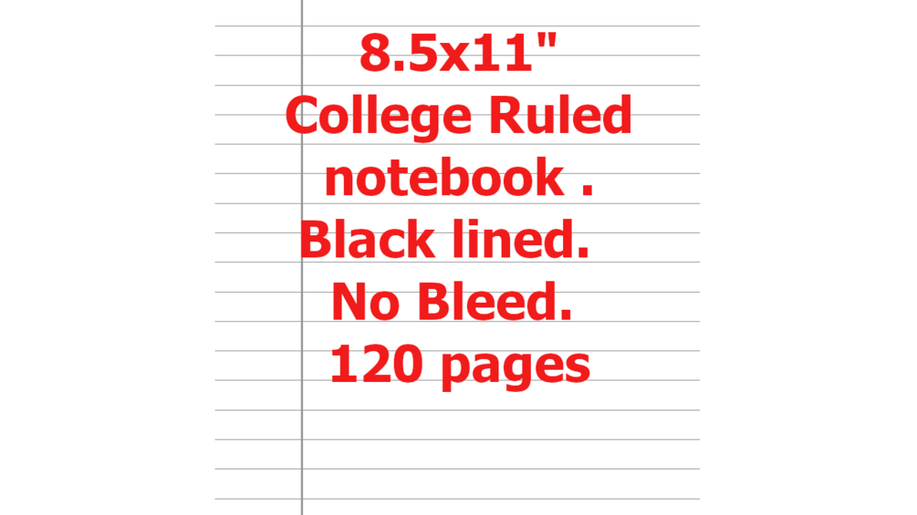 8.5x11" 120 page black lined white paper NoBleed for KDP College Ruled notebook. Ready to be used for the creation of KDP no content notebooks.